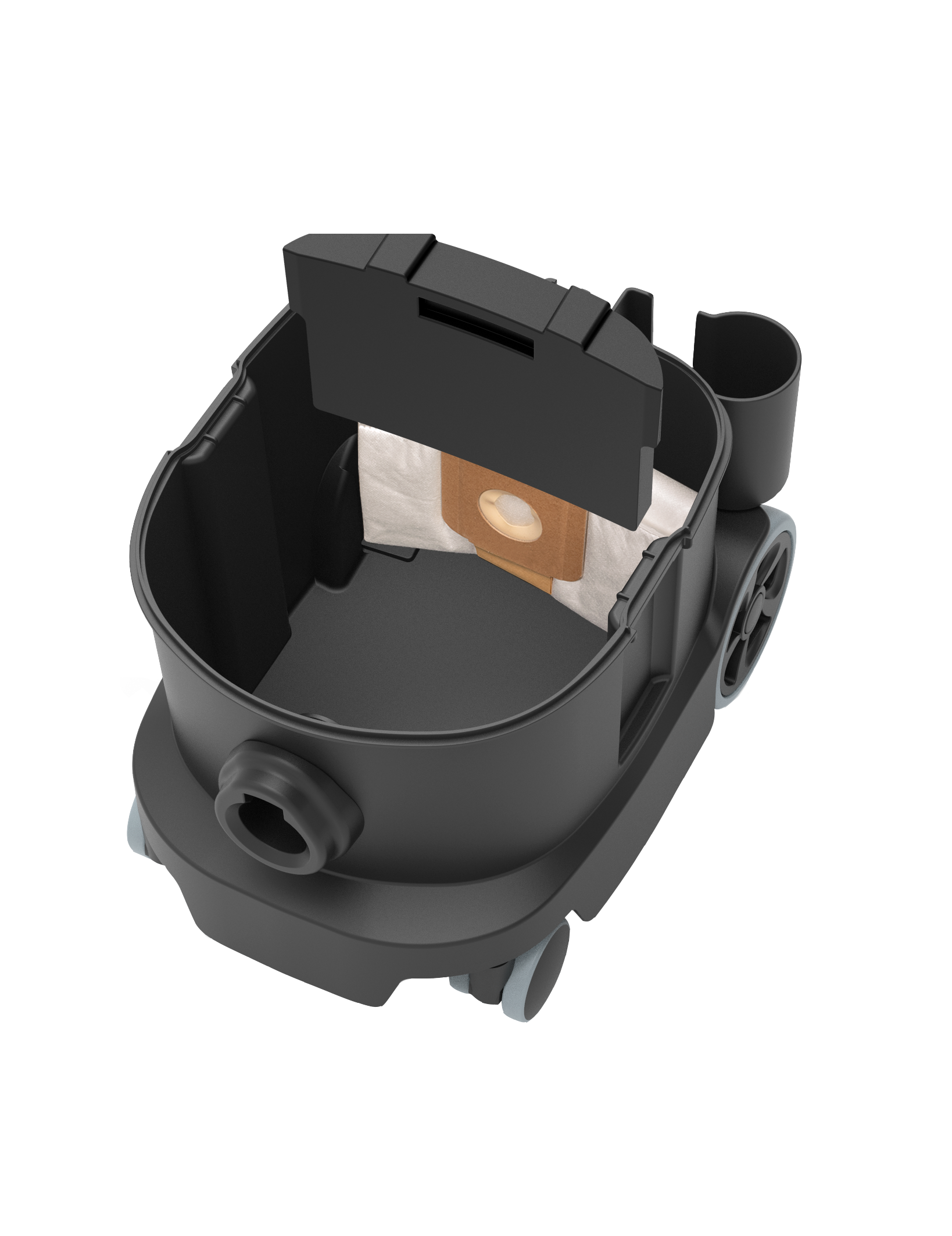 Zawsze Przygotowany: Praktyczny schowek na zapasowe worki filtrujące i akcesoria eliminuje potrzebę ciągłego wracania po sprzęt.